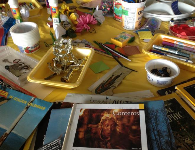 I thought about what I could share after years of helping Janis start community studios (aka Art Hives) in various locations across the country. Every space requires a different set of parameters but how each space is set up has a major impact on what art is made there. For example, a carpeted space will not invite messy painting to occur or a dimly lit space will not welcome small scissor cutting.
